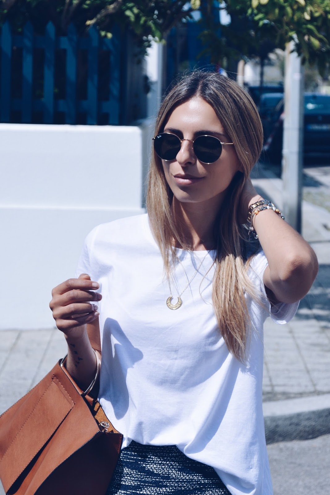 saia Springfield | tshirt, sandálias e mala Zara | colar Maria Pascual | sunnies Ray Ban