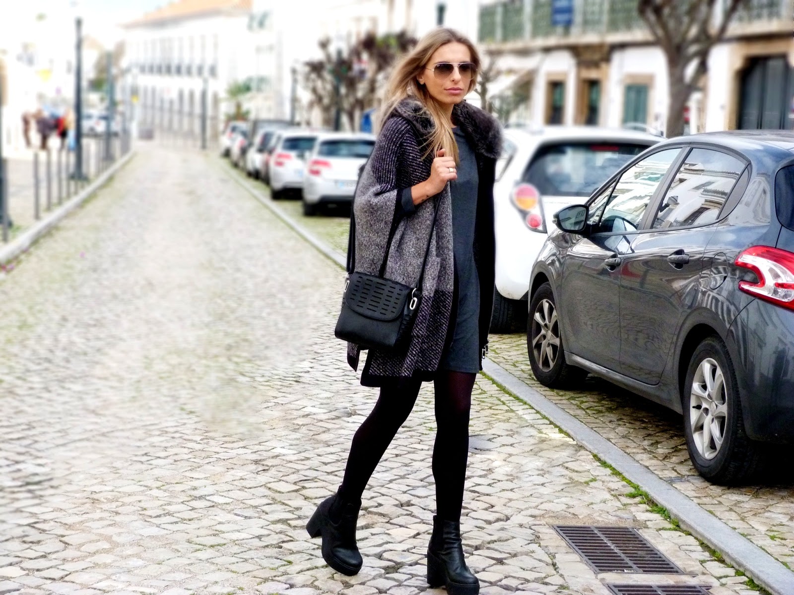 Posso dizer que neste dia não tinha vontade nenhuma de elaborar muito, mas acordei para a vida, vesti um vestido, calcei uns botins mega altos e por fim este maravilhoso poncho oferecido pela minha mãe no meu aniversário que me tem aquecido muito nestes dias frios. Sem dúvida que um simples vestido transforma logo qualquer look, sendo que a peça chave aqui é mesmo este poncho.