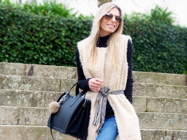 Tenho neste look 2 achadinhos de saldos, este super fofo colete de "ovelha" da H&M e estas botas da Pull and Bear que têm sido as minhas companheiras desde que cheguei ao Porto. São mesmo todo terreno! Um look quentinho e confortável é tudo o que é necessário para a correria diária.