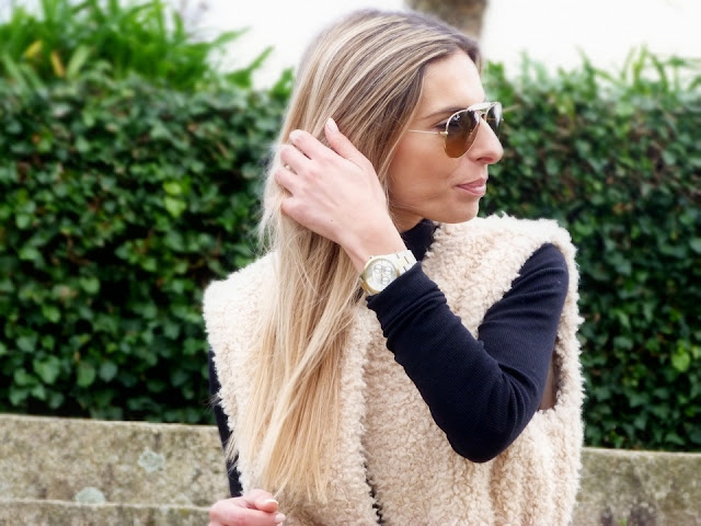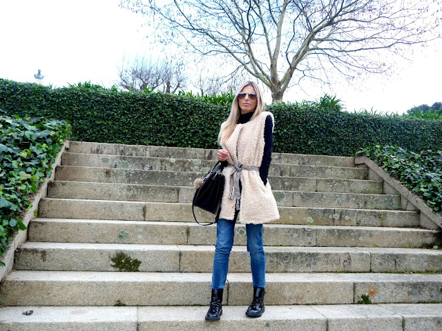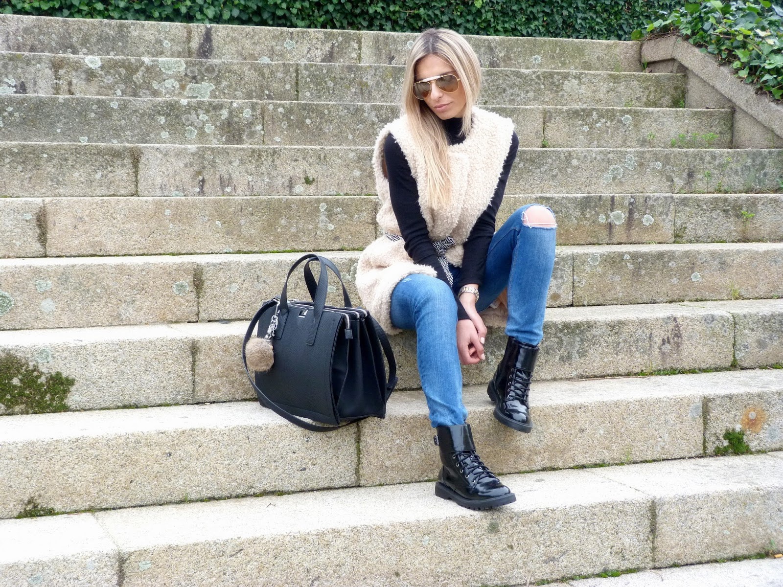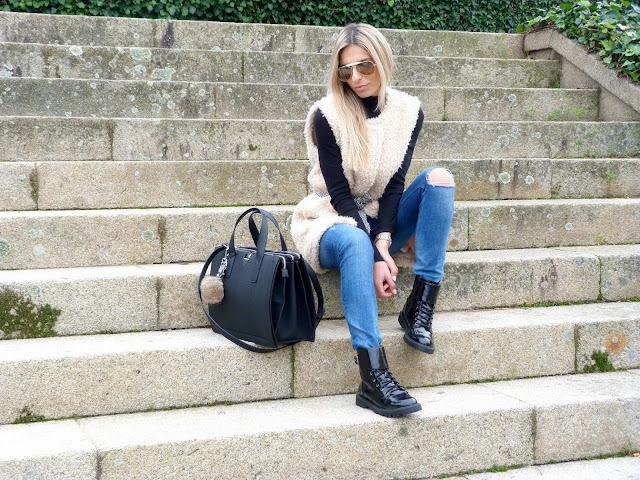 In this look I have two great pieces from sales, this super cute "sheep" vest from H&M and these boots from Pull and Bear that have been my companions since I came to Porto. They are all terrain! A warm and comfortable look is all that is necessary for the daily rush.